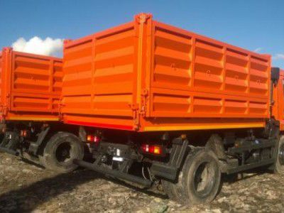 Самосвальная платформа разгрузка на две боковые стороны 50град., 5000х23440х1300мм ручное запирание бортов, верхние боковые борта с верхней навеской,, нижние боковые борта с нижней навеской. Задняя часть глухая: возможность установки распашных ворот. Гидросистема: две опорные балки, содним гидроцилиндром. Цвет платформы по выбору. Используемые материалы: пол 3мм, борта 2мм.