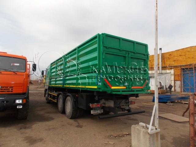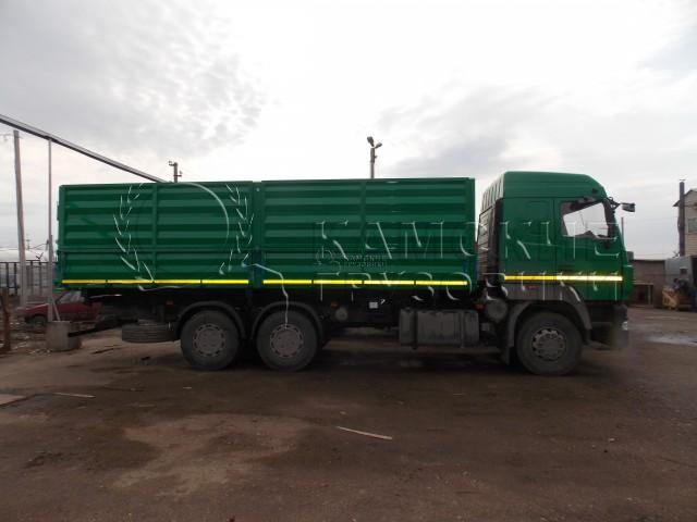 Самосвальная платформа разгрузка на две боковые стороны 50град, ручное запирание бортов, верхний ряд бортов с верхней навеской, нижний ряд бортов с нижней навеской,. Гидросистема: три опоры, с двумя гидроцилиндрами. Цвет платформы на выбор.
